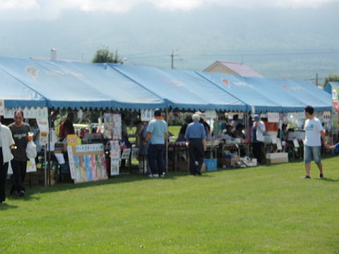 本日は天気に恵まれて、倶知安町のジャが祭りに次ぐ大イベントです。協賛・関連団体の約40のテントが張られ、