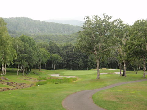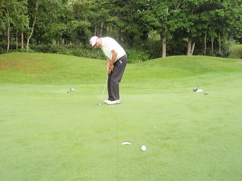 スタート時点では曇で、蒸し暑い状況でしたが、ハーフに入って雨が降ってきた傘をさしてのプレーでした。真夏の雨